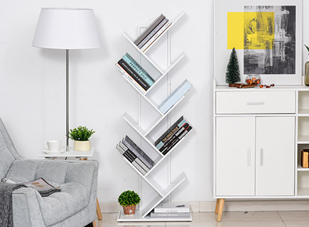 Spune adio dezordinei! Bibliotecile si rafturile ofera stil si confort livingului tau. Daca nu ai prea mult spatiu, o biblioteca montata pe perete este alegerea potrivita. Rafturile pentru carti de la Aosom iti ofera solutii de depozitare la pret mic.