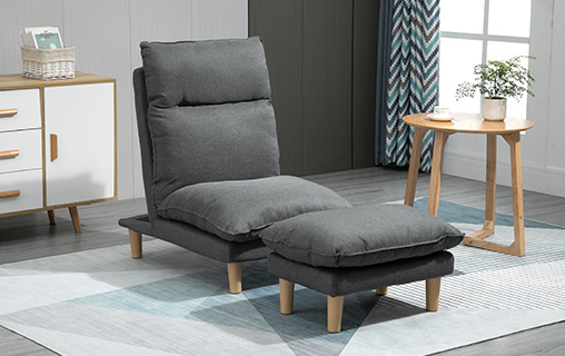 HOMCOM fotoliu cu taburet, din piele sintetica, 98x78x67 cm, gri