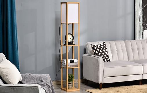 Homcom Lampa Pom 160 cm – Negru cu Rafturi pe 3 Niveluri