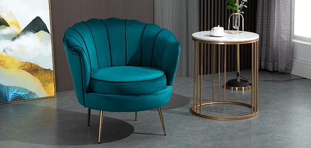 Homcom Fotoliu Verde din Catifea – Elegant cu Picioare din Lemn