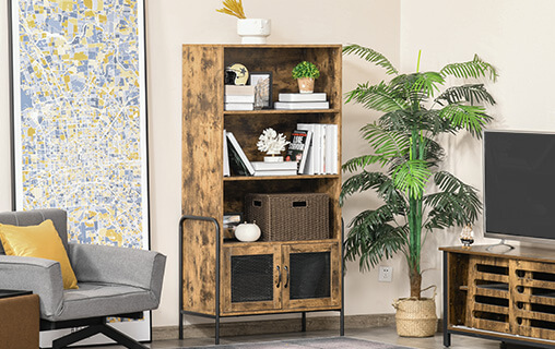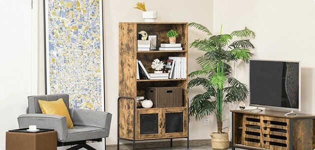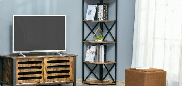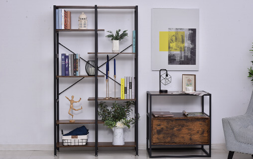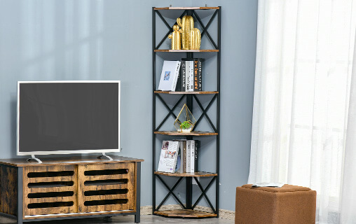 HOMCOM biblioteca stil industrial, 70x30x180cm, maro