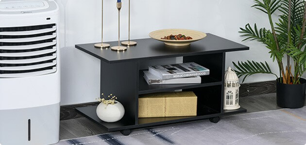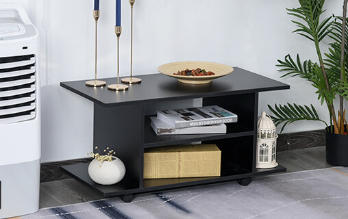 HOMCOM Mobilier Pentru Tv in Lemn cu Roti, Negru,40x40x80cm