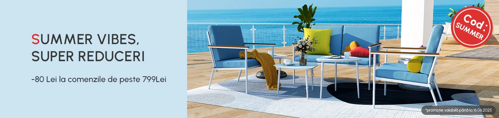 Outsunny Set de Mobilier de Grădină din 5 Piese cu Canapea, 2 Fotoli și 2 Măsuțe de Cafea, 118x72x80 cm, Albastru Deschis