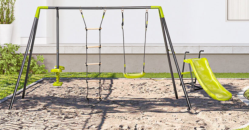 AIYAPLAY Set de jocuri pentru copii cu tobogan leagan reglabil cerc masina pentru copii cu volan cadou pentru copii albastru pentru copii pentru plimbare pentru distractie echilibru