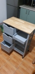 O piesa indispensabila intr-o bucatarie. Foarte versatila, o poti muta foarte usor unde ai nevoie, poate fi folosita ca blat de lucru, loc de depozitare. Este un produs robust, culoare frumoasa, finisaje foarte bune si un raport calitate-preț excelent. Colet ambalat foarte bine si o livrarea rapidă.
