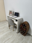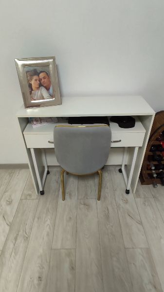 Sunt extrem de mulțumită de acest birou! Designul este superb și transformă complet aspectul camerei. L-am ales pentru dimensiunile compacte (se potrivește perfect într-un colț îngust), dar oferă suficient spațiu pentru un laptop și o lampă. Cele două sertare sunt un mare plus pentru organizare. Este stabil, nu se clatină și finisajele arată foarte bine, nu par 'ieftine'. Recomand cu încredere oricui caută o piesă de mobilier care combină stilul cu utilitatea!