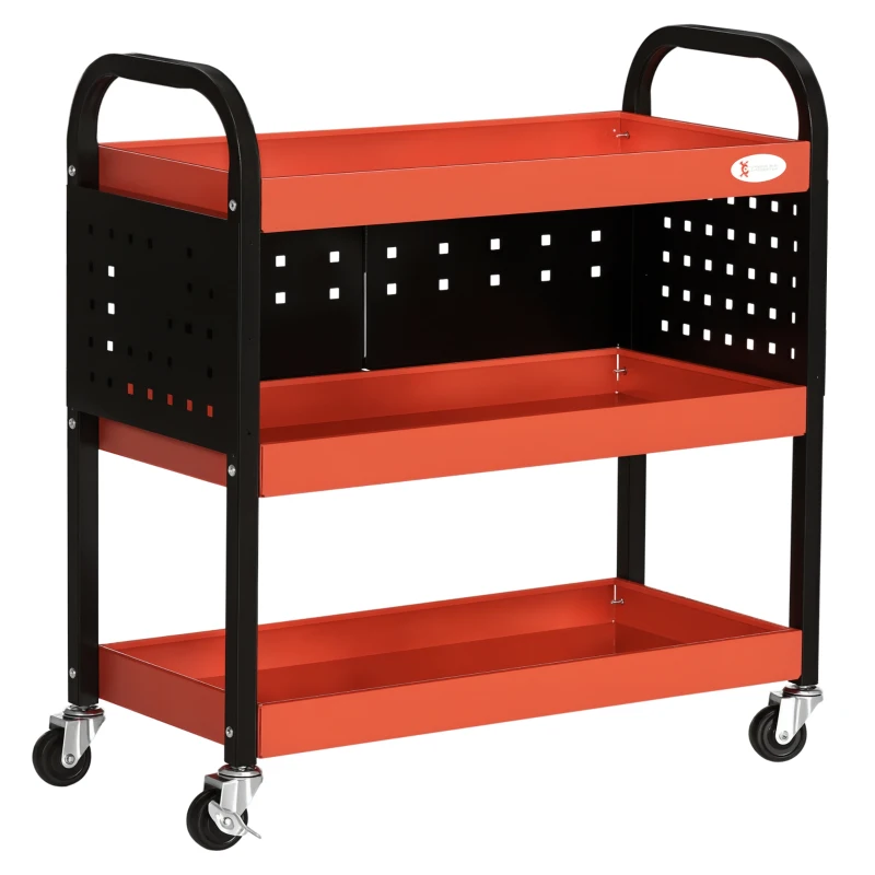 DURHAND Cărucior de atelier servante atelier cu 3 niveluri cu rafturi, plăci suspendate, încărcare până la 100 kg, roșu