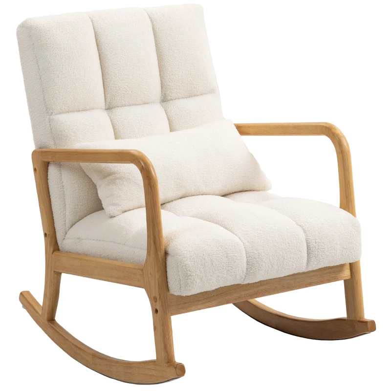 HOMCOM Balansoar 90°-130° cu Pernă Lombară din Țesătură Sherpa Albă
