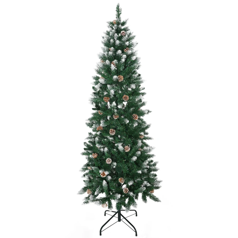 HOMCOM Brad de Craciun cu 6 picioare cu zapada artificiala cu 508 ramuri realiste, con de pin, pentru decorare interioara, verde alb