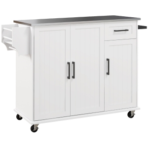HOMCOM Carucior de bucatarie cu sertare dulapuri cu condimente si 4 roti din lemn