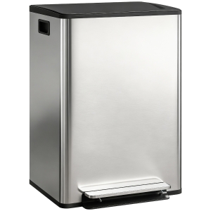 HOMCOM Coș de Gunoi cu 2 Compartimente de 30L, Pedală și Capac Silențios, 47,7x37,5x66,8 cm, Argintiu