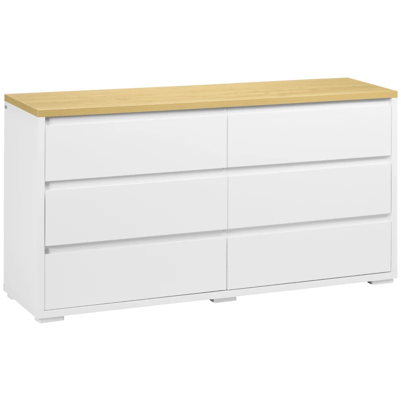 HOMCOM Comodă Modernă cu 6 Sertare din PAL pentru Dormitor și Hol, 140x37x75cm