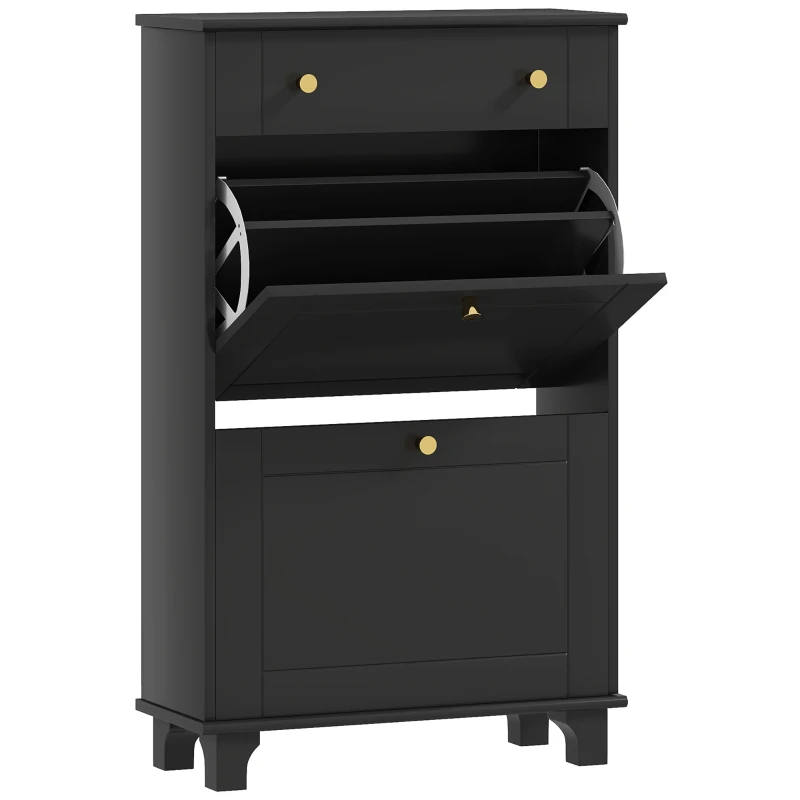 HOMCOM Dulap pentru pantofi îngust cu sertare cu uși basculante și raft reglabil, 60 x 23,5 x 98,5 cm, negru