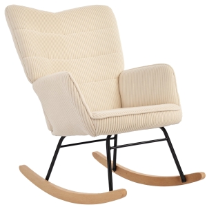 HOMCOM Fotoliu de leagan, captuseala groasa, spatar larg, lemn de fag/oțel, pana la 120 kg, Bej