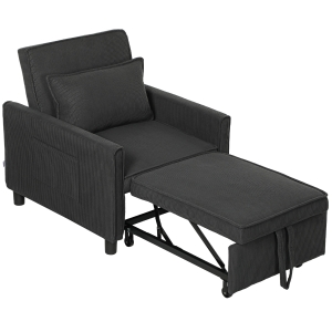 HOMCOM Fotoliu Pat Individual cu 2 Perne și Spațiu de Depozitare, Canapea Extensibilă, 100x98x88 cm, Maro Deschis