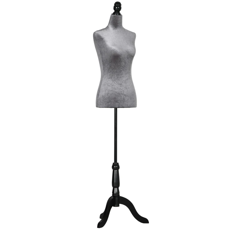 HOMCOM Manechin de croitorie reglabil 130-168 cm cu trepied din lemn pentru fotografie de modă și expunere haine Gri