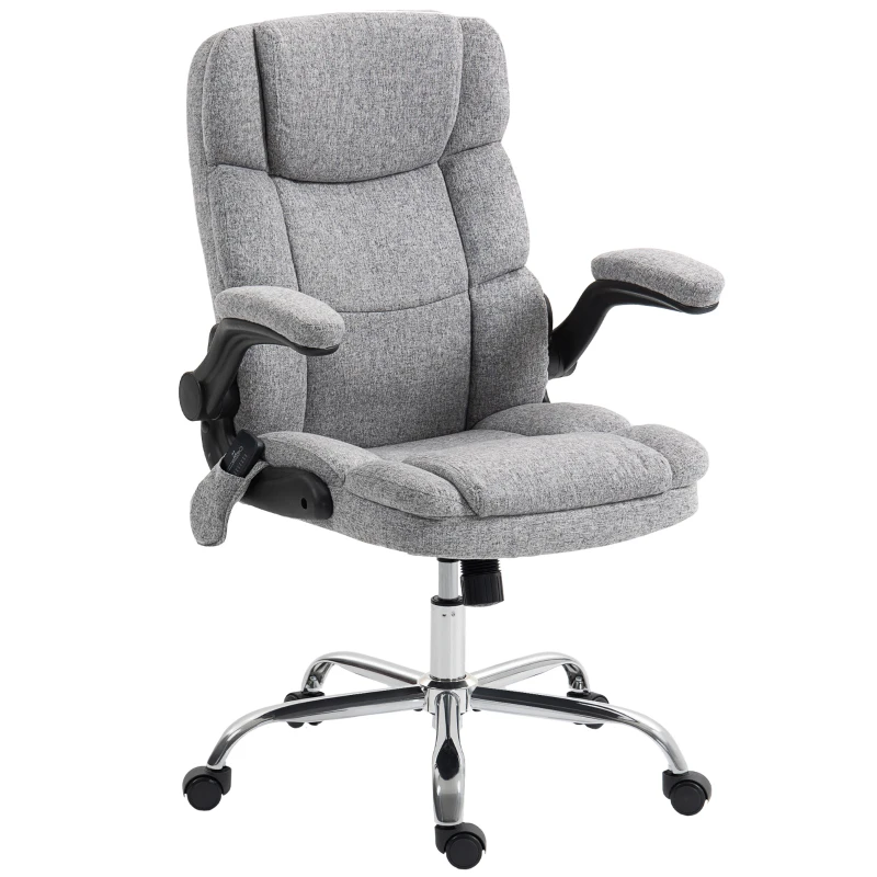 HOMCOM Scaun de Birou cu Masaj la 4 Puncte și Încălzire și Brațe Pliabile, Gri