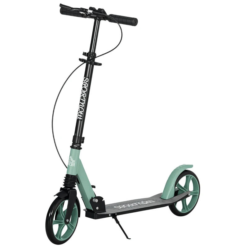 HOMCOM Scuter pliabil pentru adulți +14 ani cu ghidon reglabil, roți mari de 20 cm, amortizor și frână dublă din aluminiu - verde