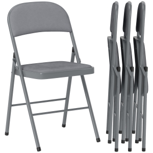 HOMCOM Set de 4 scaune pliante și portabile interior cu șezut și spătar tapitate în catifea, cadru din oțel, gri deschis