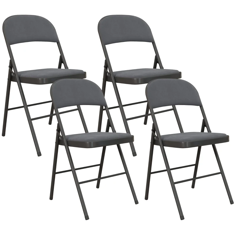 HOMCOM Set de 4 scaune pliante și portabile pentru interior, cu șezut și spătar tapițate în catifea, cadru din oțel, gri închis