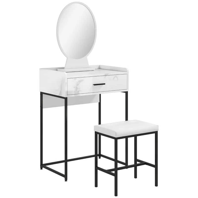 HOMCOM Set Măsuță de Toaletă cu Oglindă de Machiaj, Sertar și Scaun Căptușit, Alb