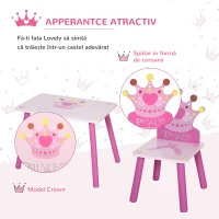 Homcom Set Masa si Scaune Copii – Design Printesa, 3-8 Ani