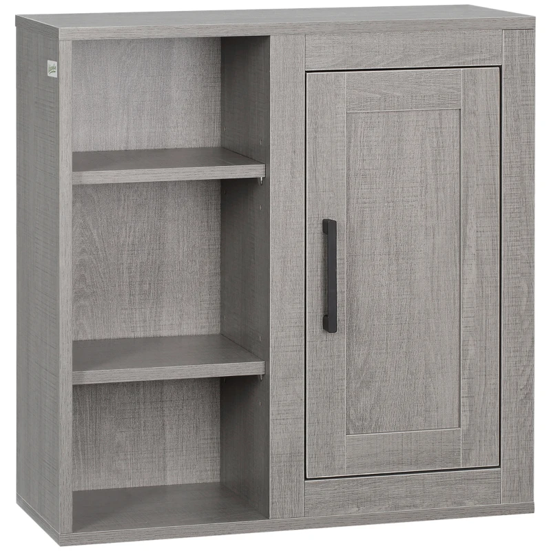 Kleankin Dulap de baie cu montare pe perete, cu 3 rafturi deschise, gri