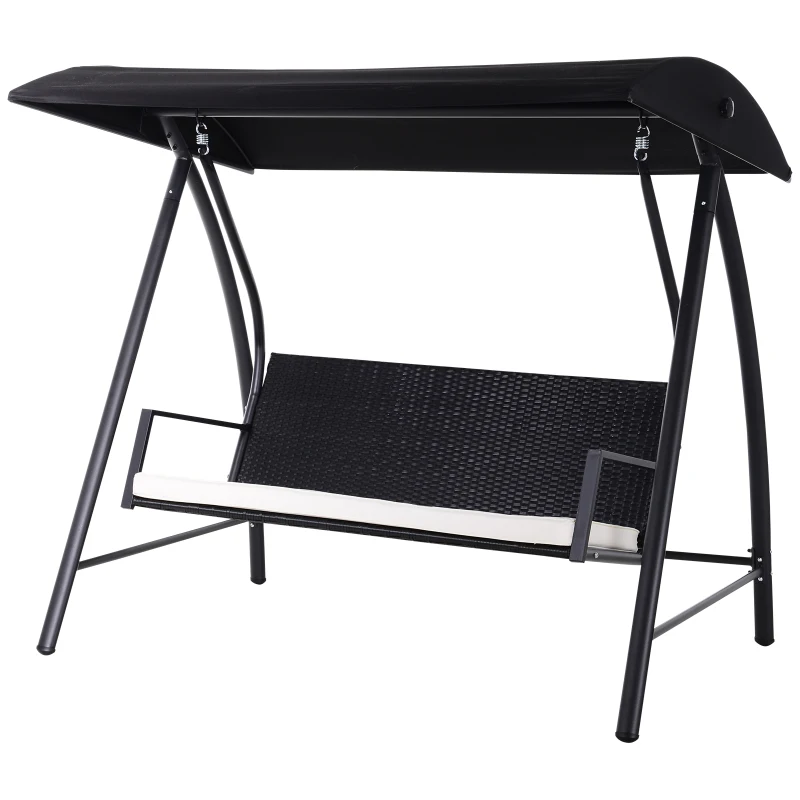 Outsunny Balansoar Hollywood 3 locuri din Polyrattan, balansoar de grădină cu copertină reglabilă, protecție solară, pernă de șezut, bancă suspendată, până la 360 kg, balansoar pentru grădină 198x124x179cm Negru