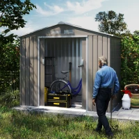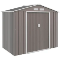 Outsunny Magazie Gradina Metal cu Uși Glisante pentru Familie, 213x130x185 cm, Gri