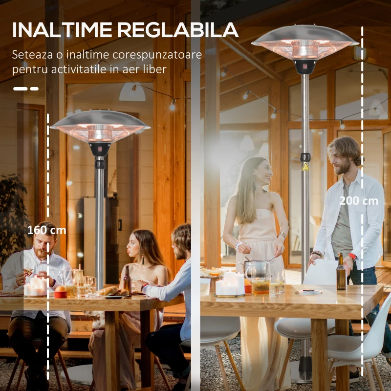 Outsunny Incalzitor pentru exterior cu 3 temperatures de pana la 3000 W, incalzitor cu infrosu cu inaltime reglabila din otel si aluminiu, argintiu