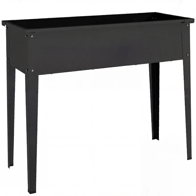 Outsunny Jardinieră pe Picioare din Metal, Jardinieră Ridicată 80 l cu margini rotunjite, Orificiu de drenaj, 100 x 40 x 80 cm, Negru