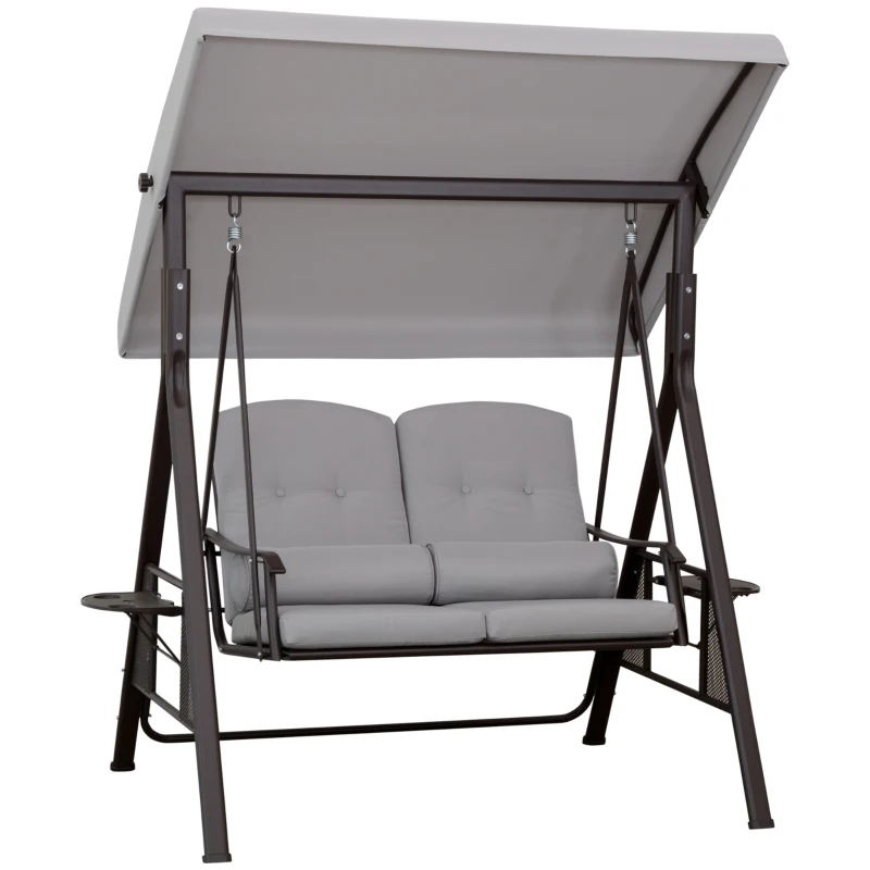 Outsunny leagăn Hollywood 2 locuri pentru grădină cu acoperiș, pernă și tăviță, metal, poliester, gri, 162 x 118 x 173 cm(m-2)