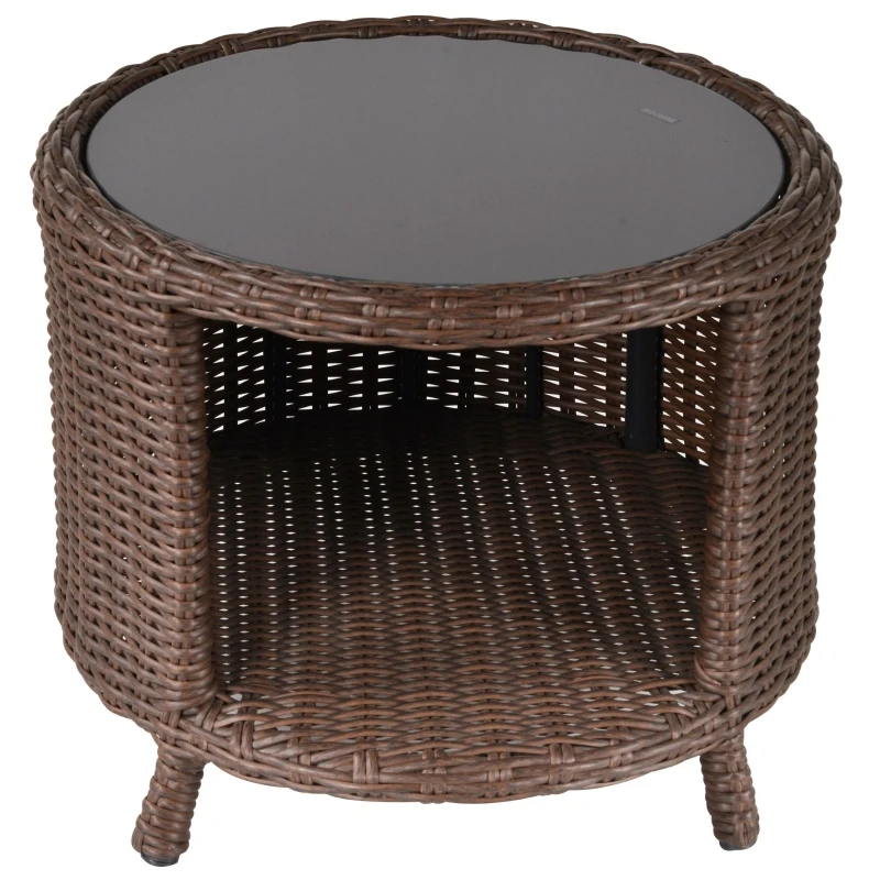 Outsunny Masuta de Gradina cu Compartiment de Depozitare Ratan PE si Raft din Sticla