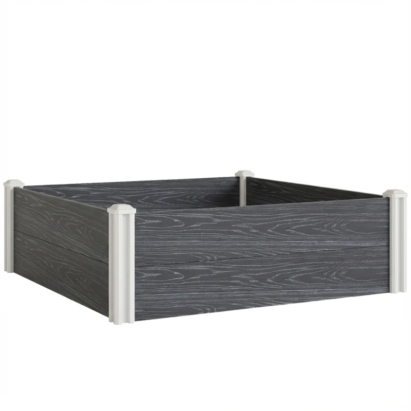 Outsunny Strat Înălțat pentru Grădină din Vinil, 102x102x33 cm, Kit Modular cu Picioare Îmbinabile și Bază Deschisă, Ghiveci pentru Culturi de Flori, Ierburi și Legume, Gri Închis
