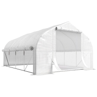 Outsunny Seră de Grădină 4x3m tip Tunel cu Acoperire din PE, Ușă și 8 Ferestre Rulabile, Alb