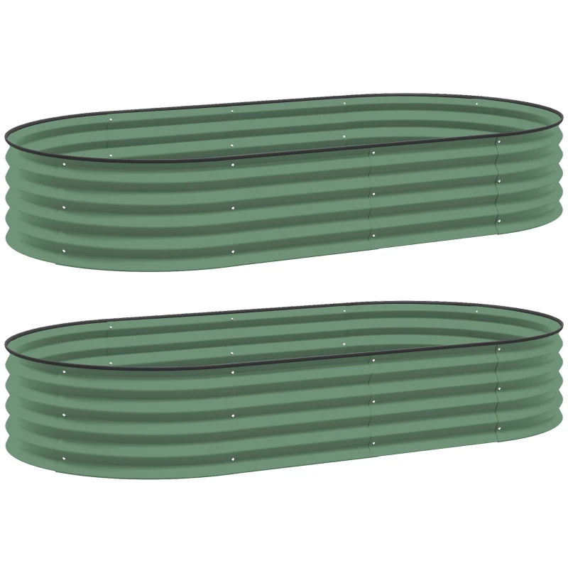 Outsunny Set de 2 paturi înălțate pentru grădină, ghivece de exterior cu fund deschis, margine din cauciuc, metal, 181 x 93 x 30 cm, Verde