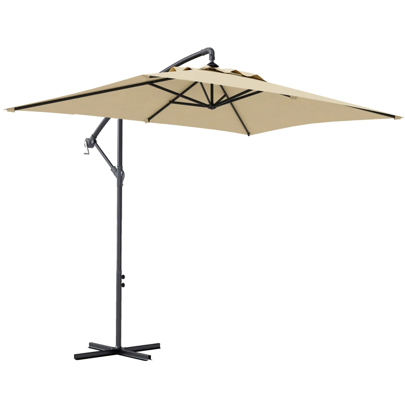 Outsunny Umbrelă de grădină suspendată cu bază în cruce și deschidere cu manivelă, 294x193cm, bej