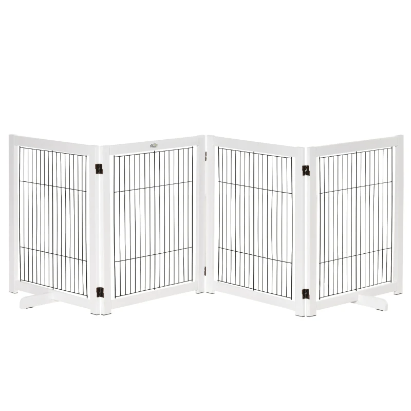 PawHut Barieră de Siguranță pentru Câini Pliabilă 264x77 cm din 4 Panouri cu Picioare și Ramă din Lemn pentru Uși Scări