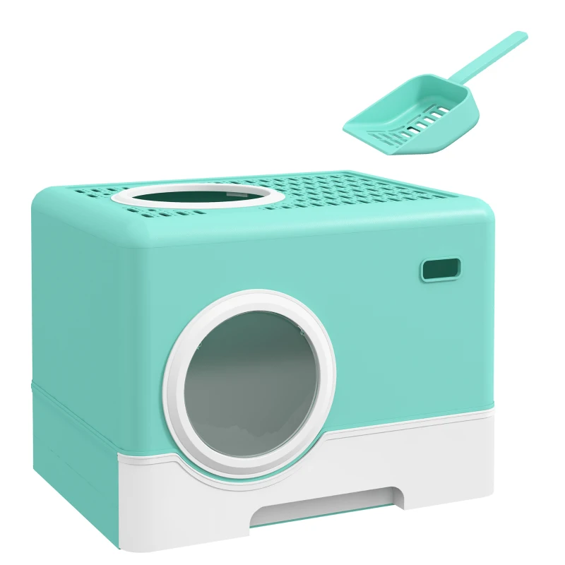 PawHut Litieră pentru Pisici cu Capac și Lopățică, Intrare Dublă și Tavă Detașabilă, 52x41x38.5 cm, Verde(m-9)
