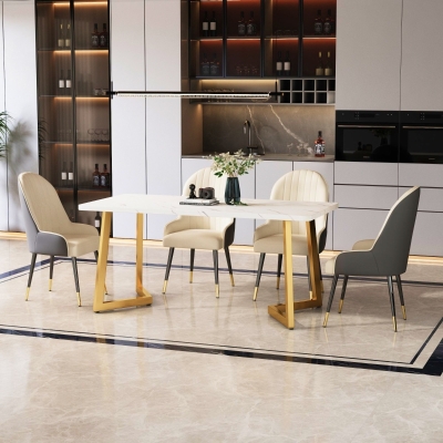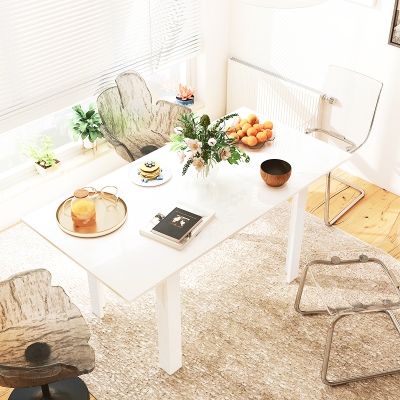 - Stilul, culoarea si materialul mesei de bucatarie trebuie sa se potriveasca cu restul decorului din bucatarie. O masa din sticla poate adauga un aspect modern unei bucatarii, in timp ce o masa din lemn masiv poate completa perfect o bucatarie rustica. O masa de bucatarie alba se poate adapta cu usurinta atat intr-u decor minimalist, cat si intr-un elegant, mai ales daca peretii sunt intr-o culoare mai inschisa. Daca vrei mai multa uniformitate vizuala, alege un set de mese si scaune.